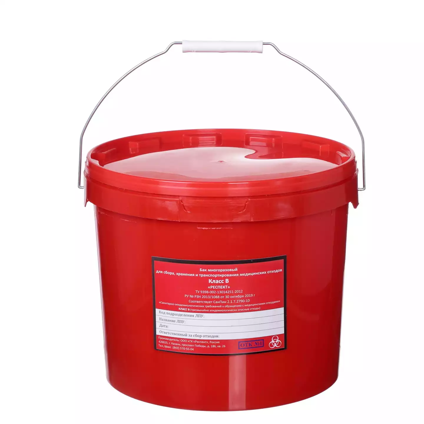 Бак 12,0л для сбора, хранения медицинских отходов (класс В), с крышкой, цвет красный, многоразовый, Респект ГК (РОССИЯ)