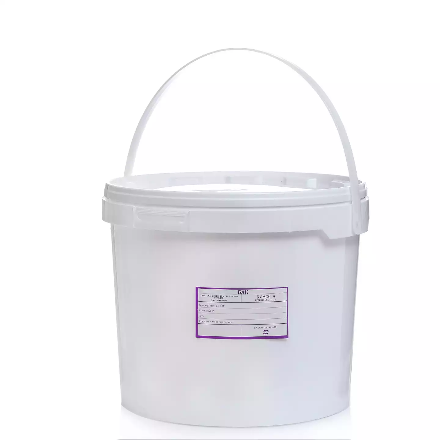 Бак 10,0л для сбора, хранения медицинских отходов (класс А), с крышкой, цвет белый, многоразовый, Респект ГК (РОССИЯ)