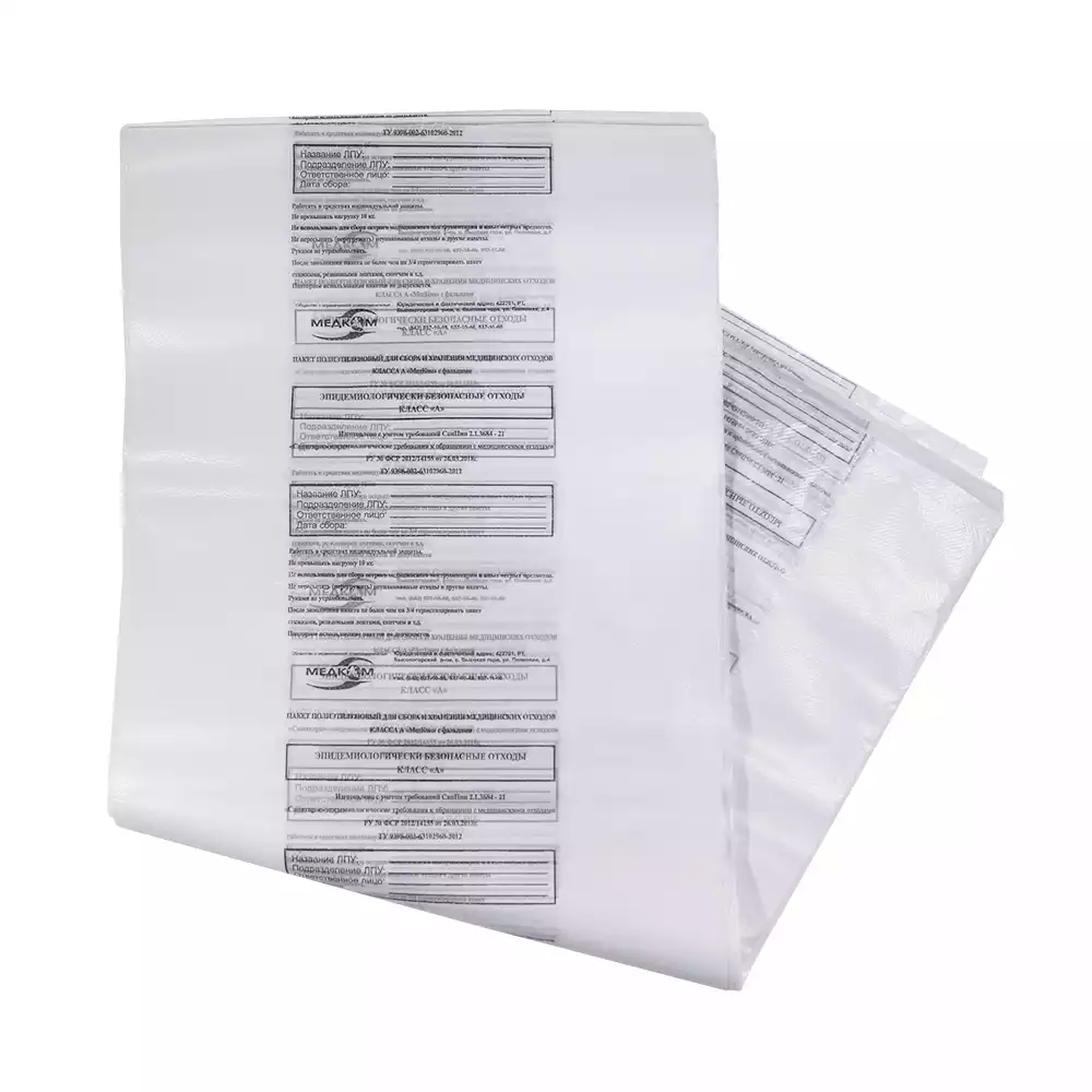 Пакет для сбора медицинских отходов, класс А(белый) размер 600*1000мм, объем 70-100л, плотность 12 микрон, Респект ГК (РОССИЯ), 100 шт