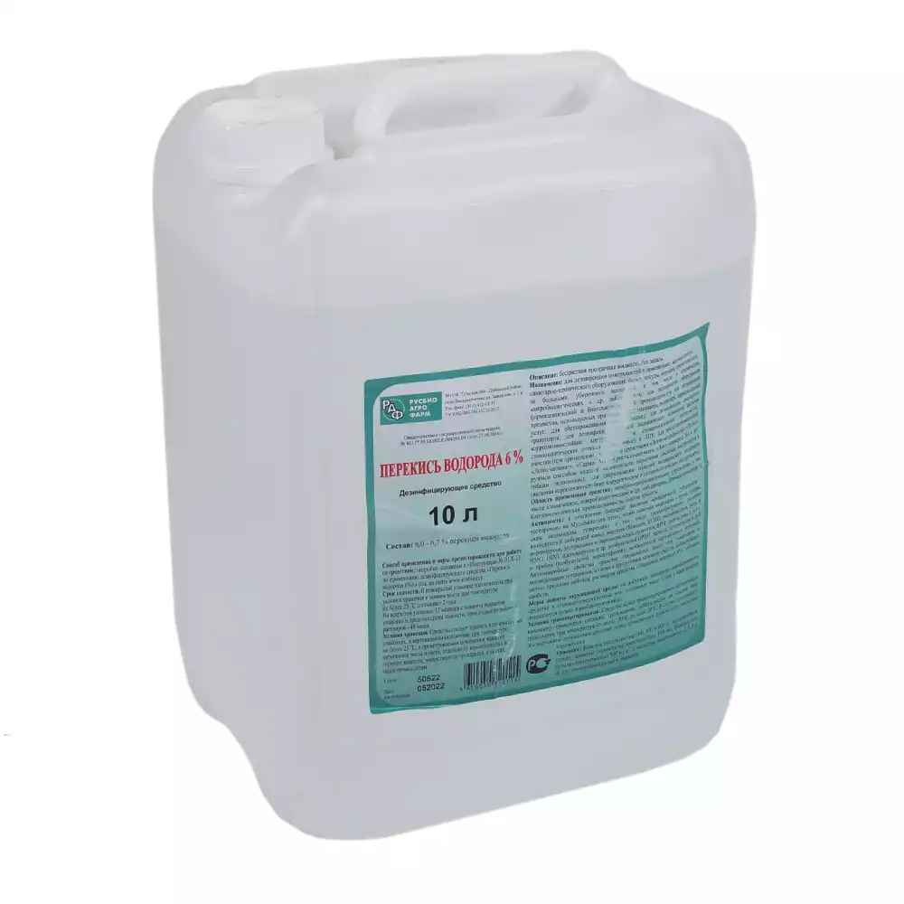 Перекись водорода 6% раствор, объем 10,0л, для наружного применения, РусбиоАгроФарм