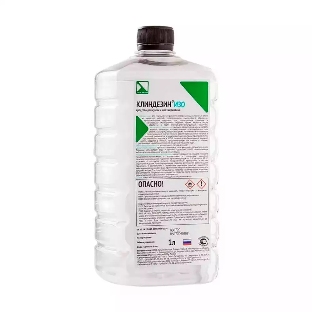 Клиндезин ИЗО объем 1,0л, дезинфцирующий раствор ( 70% изопроптловый спирт), Гигиена Плюс (РОССИЯ)
