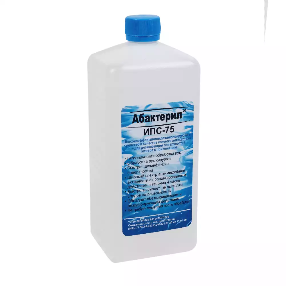 Абактерил - ИПС-75 1,0л, кожный антисептик и дезинфектант для поверхностей, изопропиловый спирт – 75% (готовый раствор), Рудез