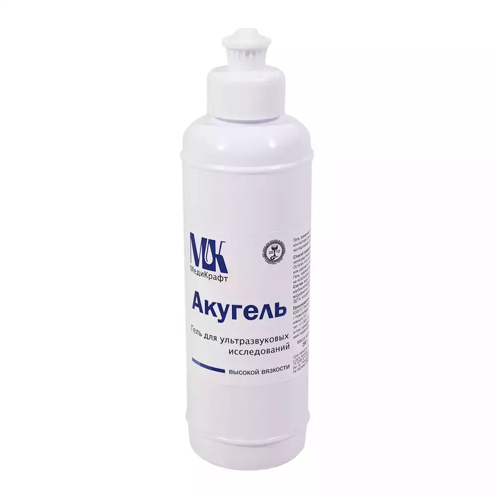 Гель Акугель, 260гр, средней вязкости, не содержит пропиленгликоль, бесцветный, для всех видов УЗИ, допплерографии, эхографии, МедиКрафт (РОССИЯ)