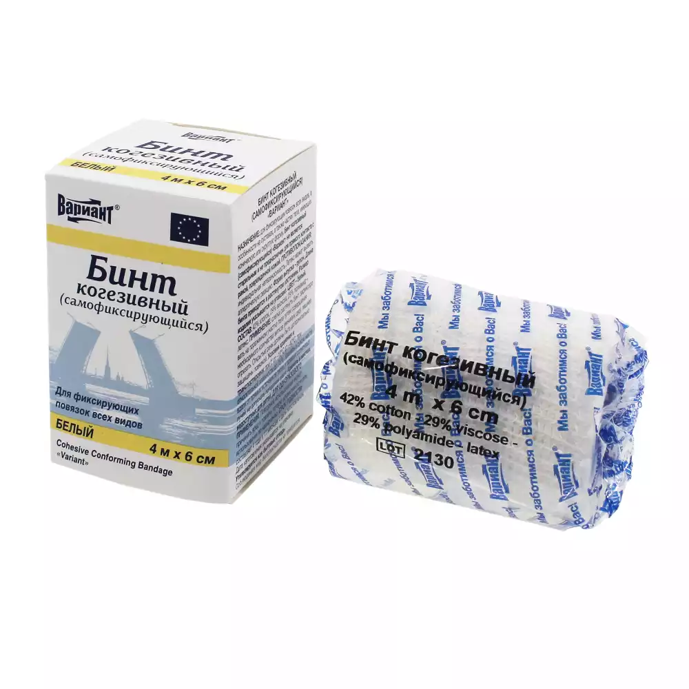 Бинт эластичный "Вариант" cамофиксирующийся когезивный, размер 4м*6см, цвет белый, Превис С.Р.Л. (Италия) (ИТАЛИЯ)