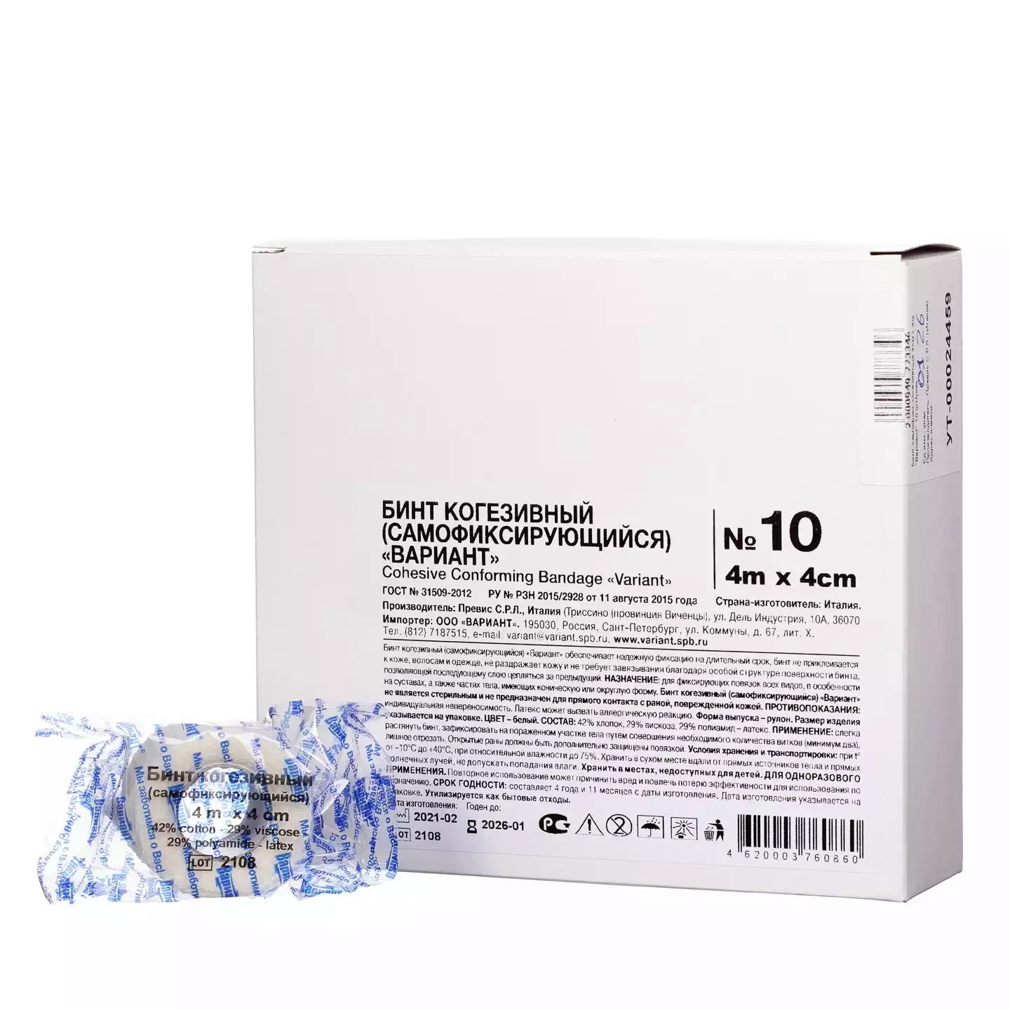 Бинт эластичный "Вариант" cамофиксирующийся когезивный, размер 4м*6см, цвет белый, упаковка 10шт, Превис С.Р.Л. (Италия) (ИТАЛИЯ)