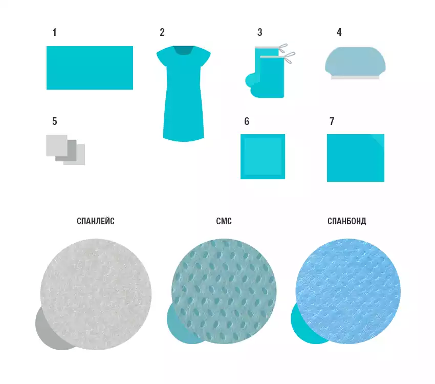 Одноразовая медицинская одежда обычно включает в себя: