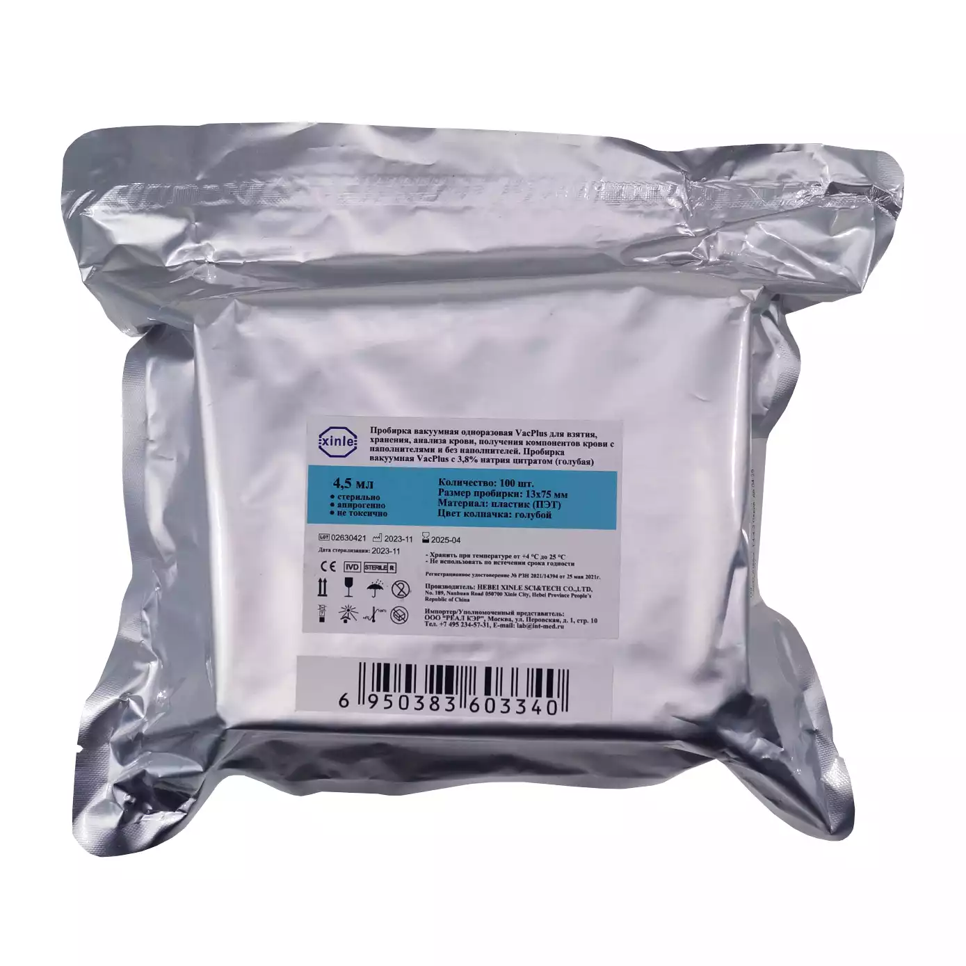 Пробирки VacPlus, объем 4,5 мл, цитрат натрия 3,8%, размер 13х75мм, пластиковые, голубой, Hebei Xinle Sci&Tech Co Ltd (КИТАЙ)