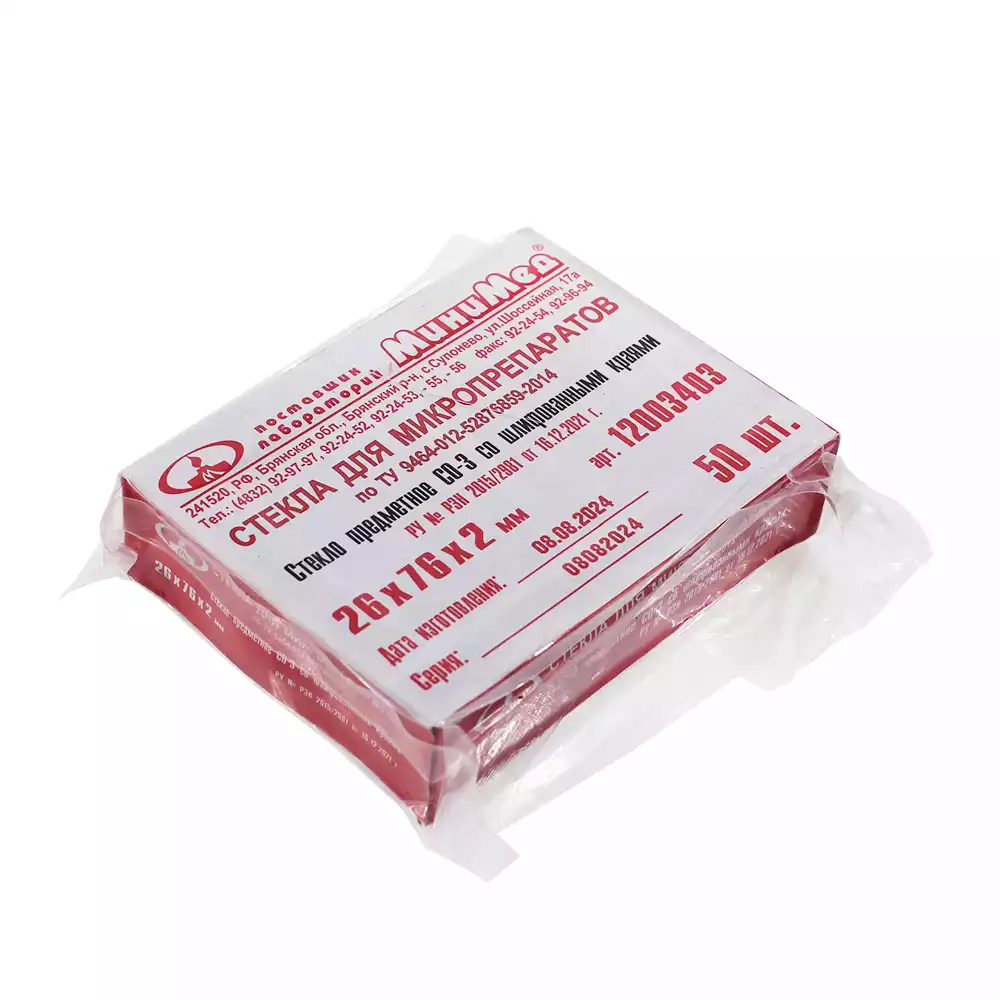 Стекло для микропрепаратов, размер 26*76*2,0мм, предметное СП со шлифованными краями, МиниМед (РОССИЯ), 50 шт