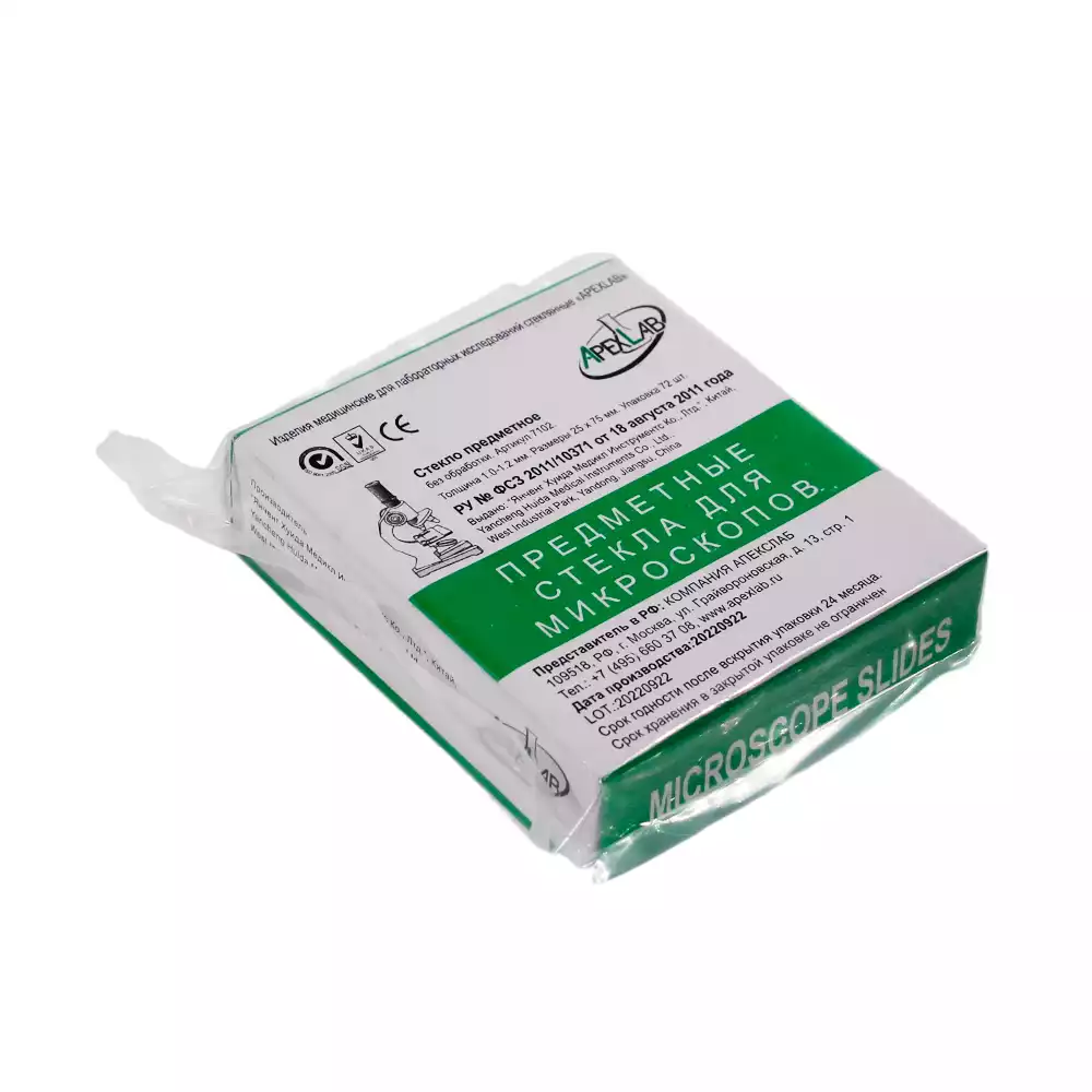 Стекло для микропрепаратов, размер 25*75*1,0-1,2мм, предметное с необработанными краями, Yancheng Huida Medical Instruments Co Ltd (КИТАЙ), 72 шт