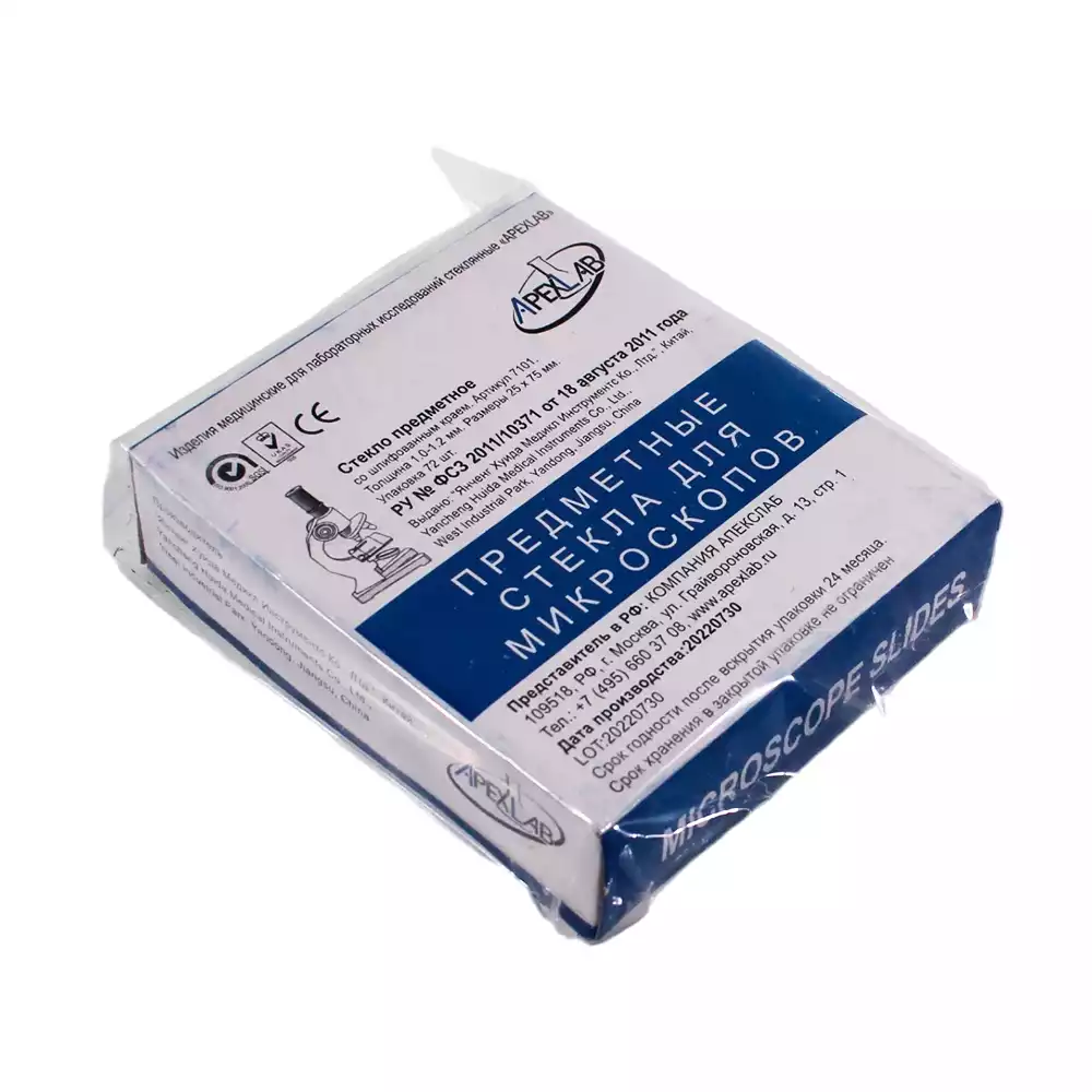 Стекло для микропрепаратов, размер 25*75*1,0-1,2мм, предметное с обработанными краями, Yancheng Huida Medical Instruments Co Ltd (КИТАЙ), 72 шт