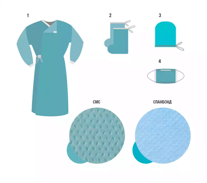 Медицинская одноразовая одежда, комплекты