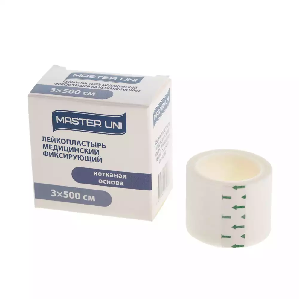 Лейкопластырь Master Uni на нетканой основе (целлюлоза),фиксирующий, размер 3см*500см, катушка в картонной коробке, ООО "ХЕЛСЛАБ" (РОССИЯ)
