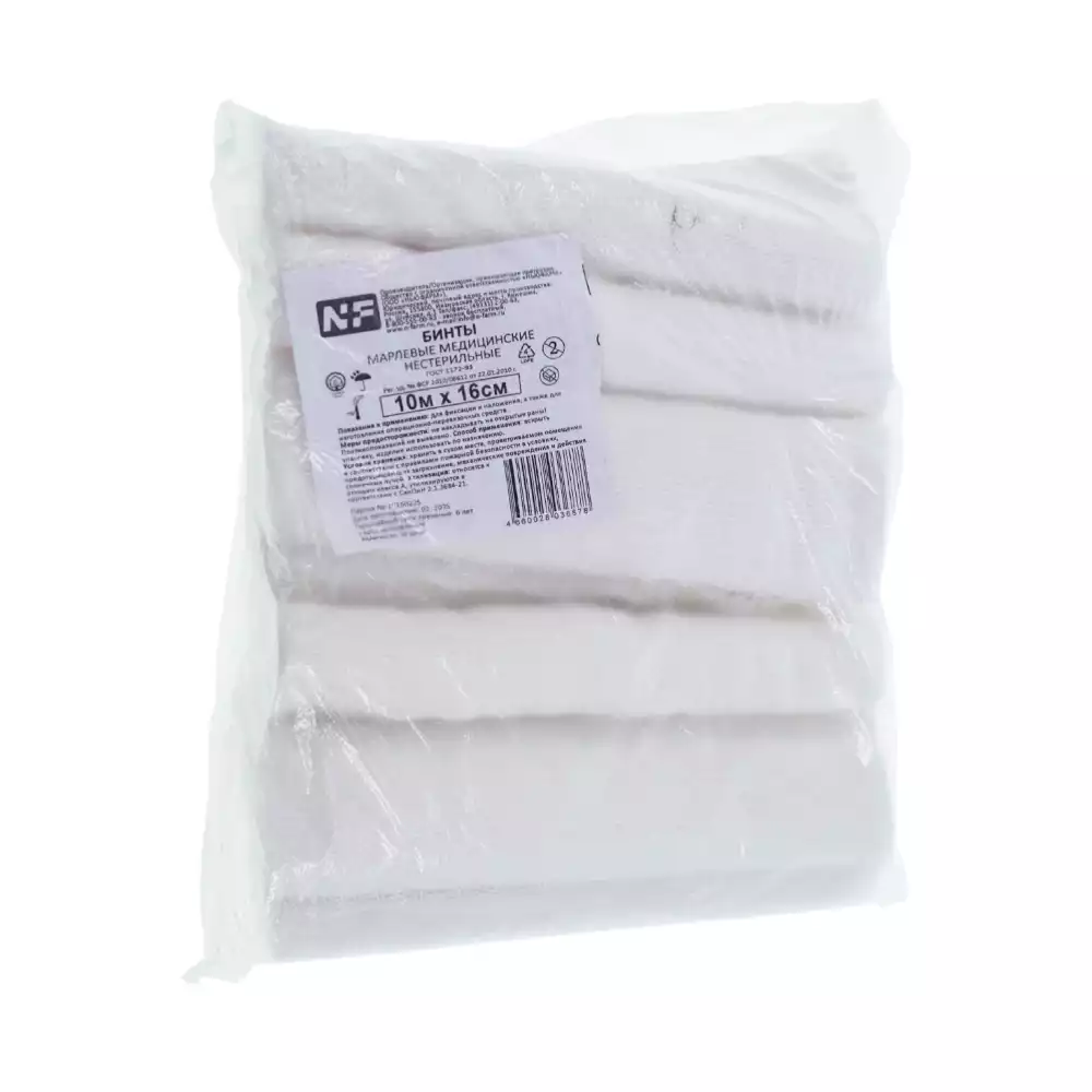 Бинт NF марлевый, размер 10м*16см, плотность 36г/м2, нестерильный, Ньюфарм (РОССИЯ), 10 шт