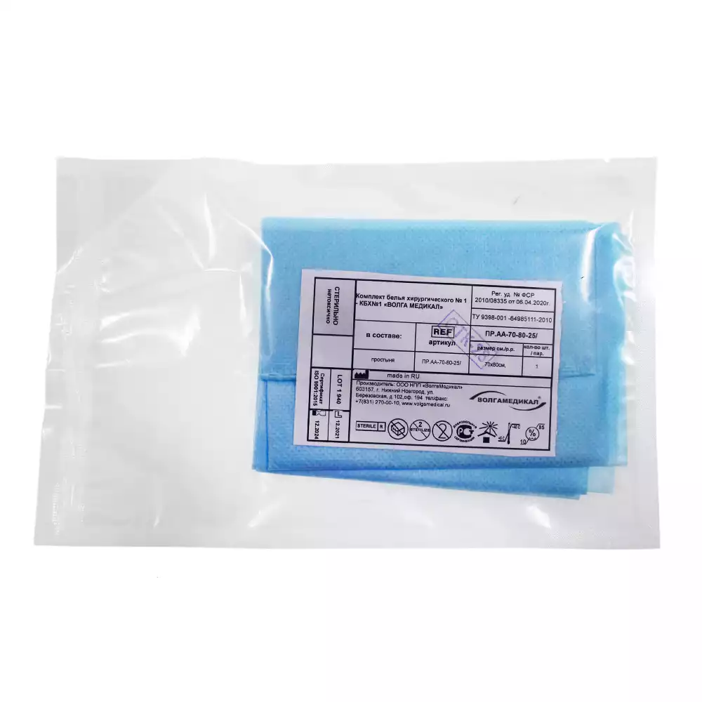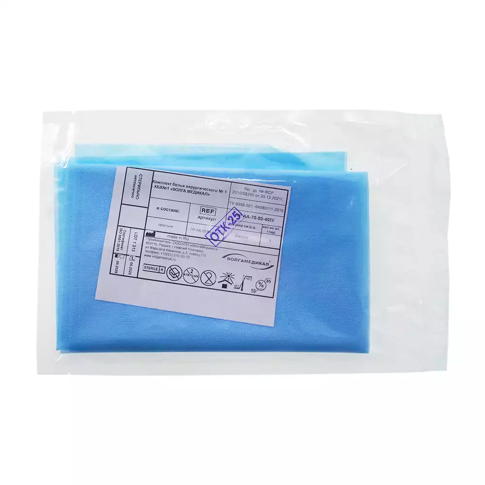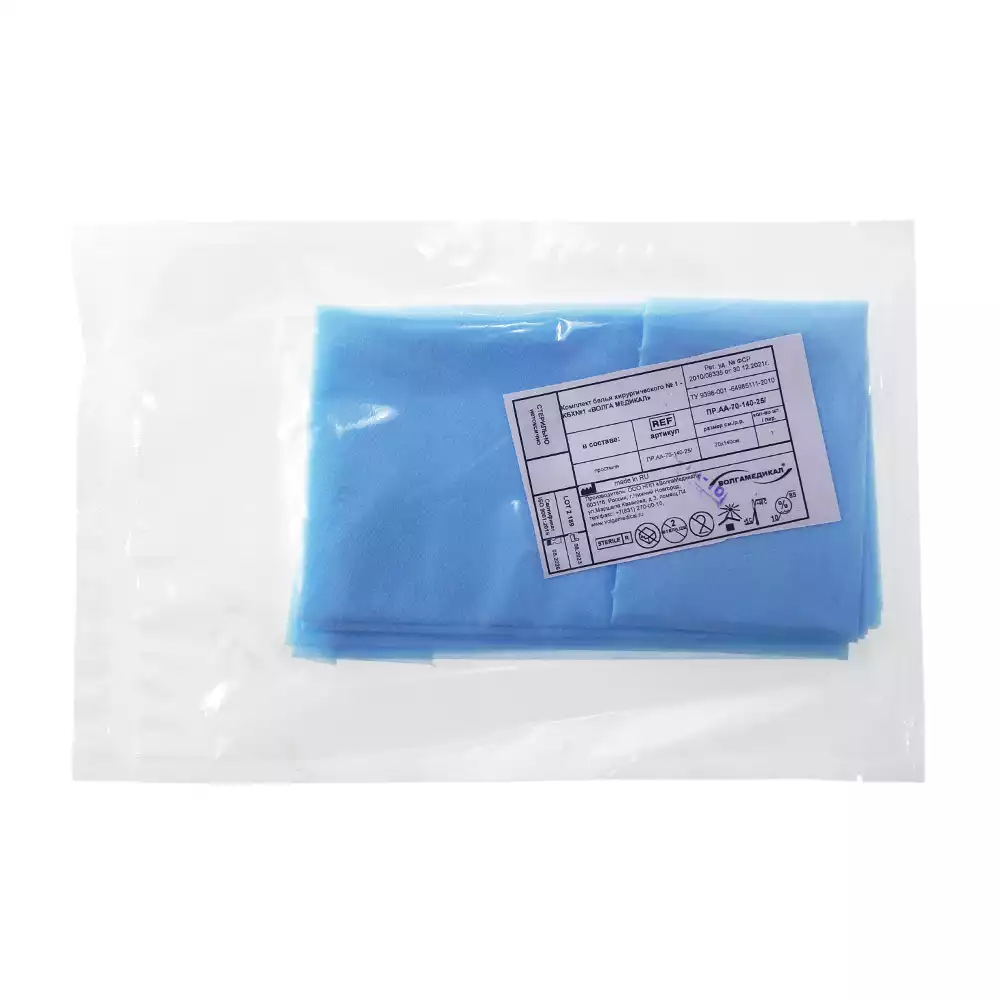 Простыня 70х80см, СМС 40г/м2 + ламинат, хирургическая, стерильная, голубая, Волга Медикал НПП (РОССИЯ)