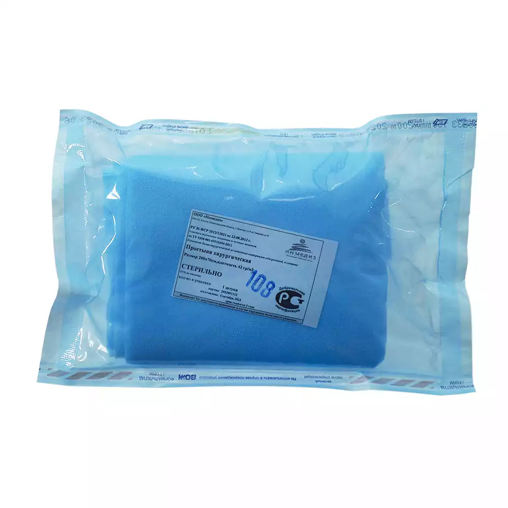 Простыня 70*200см, материал СМС 42/м2, стерильная, голубая, Инмедиз (РОССИЯ)