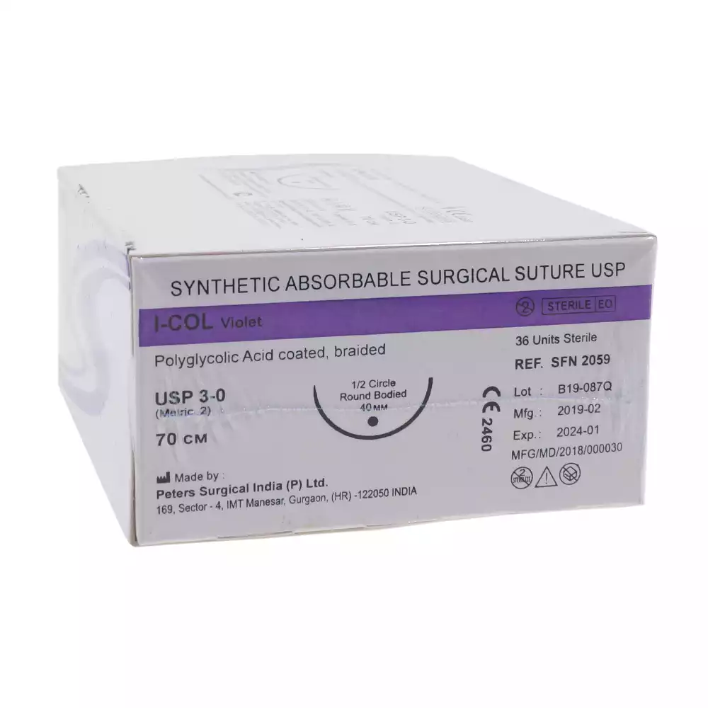 Ай- кол 3/0 (2), длина нити 70см, игла 1/2 круглая колющая 40мм, упаковка 36шт, SFN2059, Peters Surgical (ИНДИЯ)