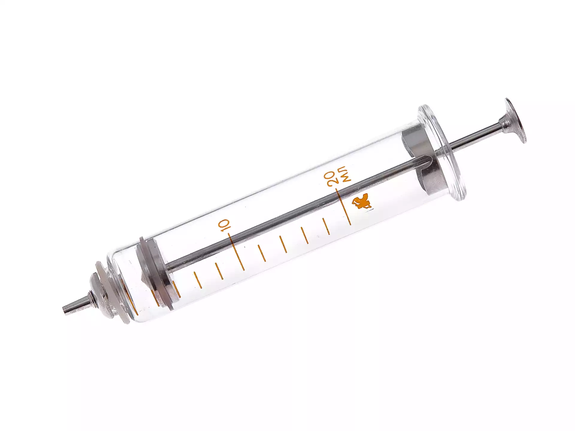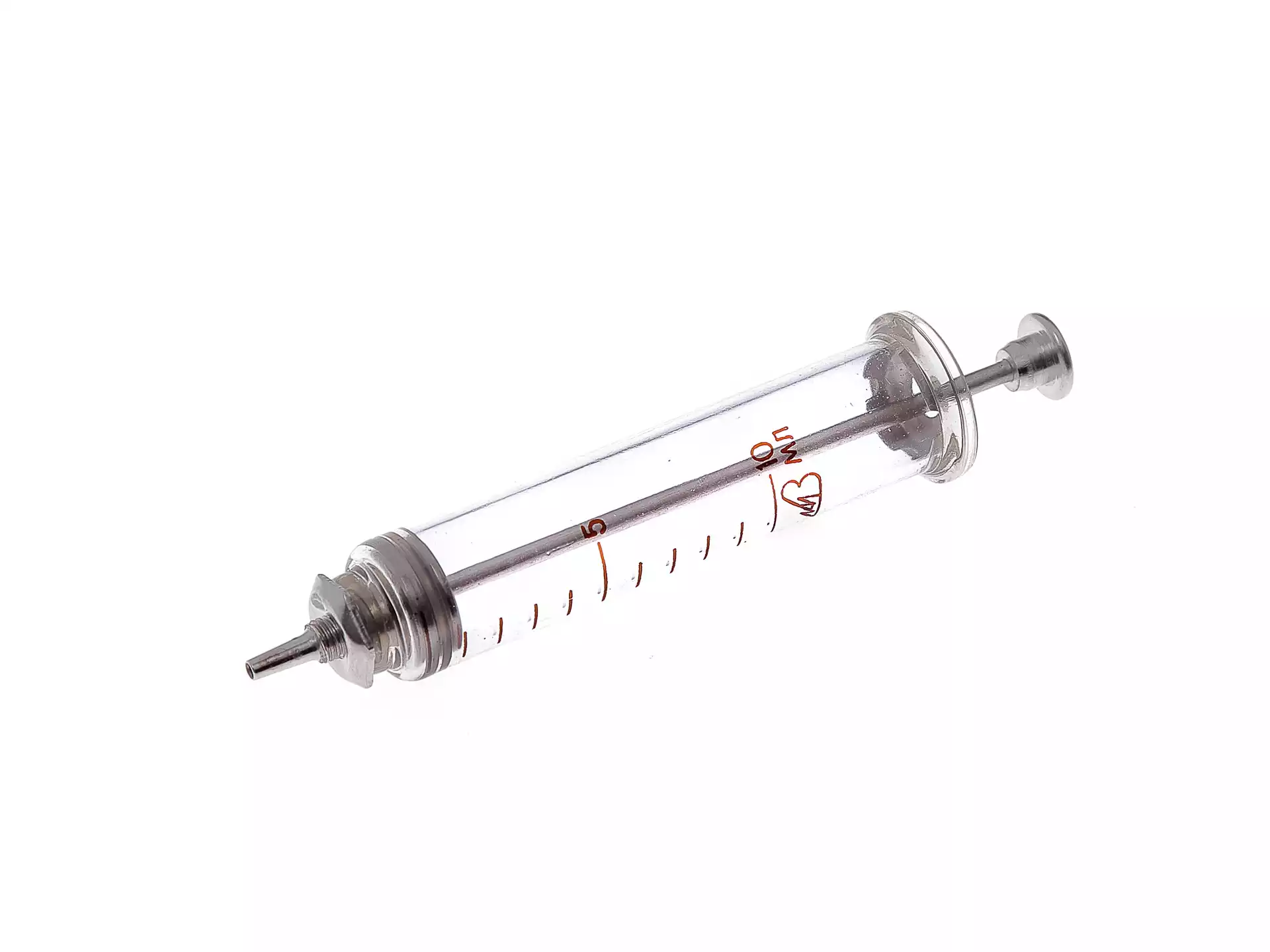 Многоразовые медицинские шприцы используются для введения или извлечения жидкостей из тела. Они обычно состоят из цилиндра с градуировкой, позволяющей точно измерить объем жидкости, и штока с иглой на конце.