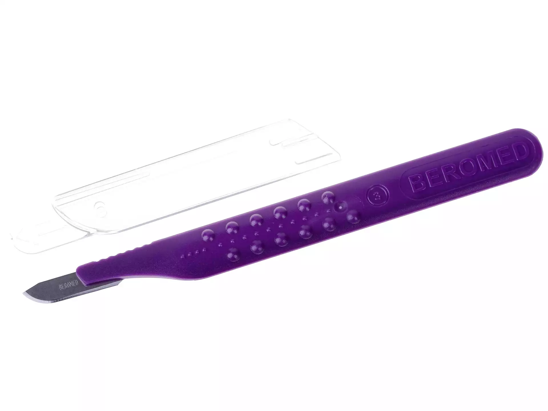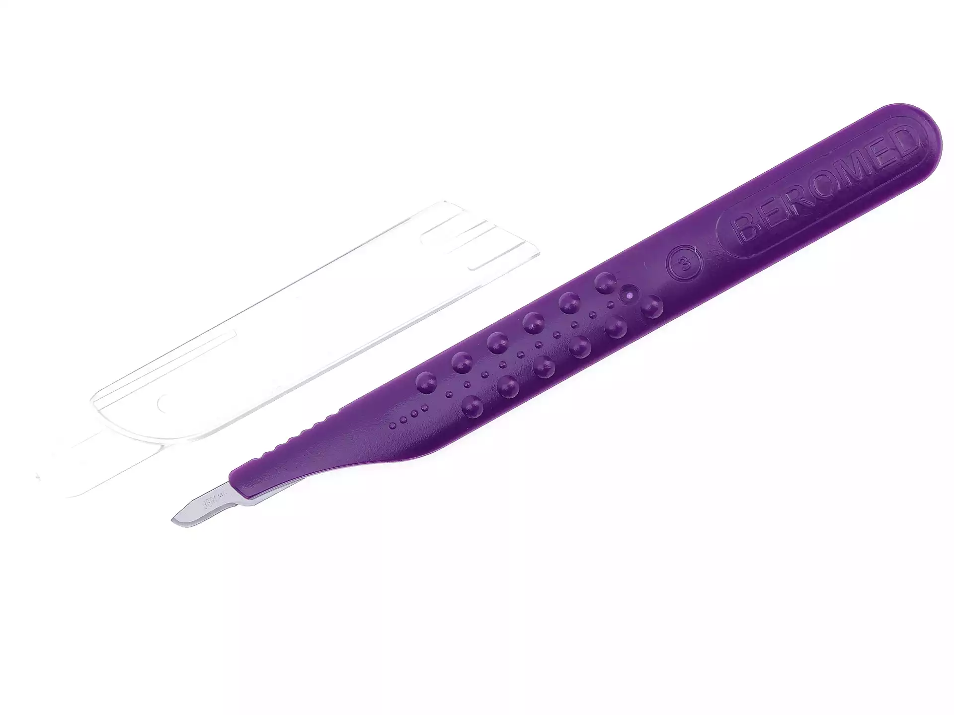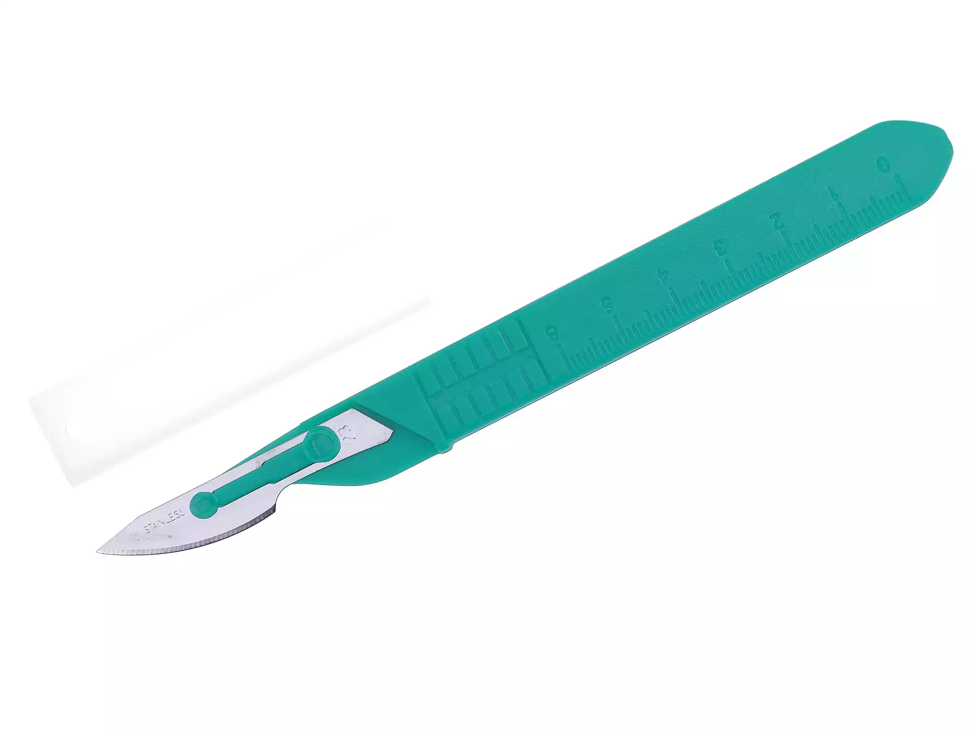 Скальпель с пластмассовой ручкой №24, нержавеющая сталь, одноразовый стерильный, Ribbel International Ltd. (ИНДИЯ)