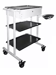 Столик МСК-548 манипуляционный передвижной метал. с двумя полками и выдвижным ящиком, колеса резиновые, размер 645х425х920мм, Медстальконструкция (РОССИЯ)